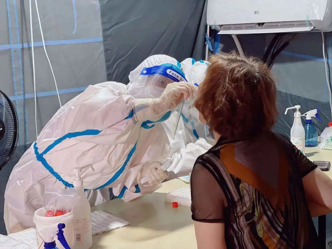 8月9日、10日,全市范围的核酸采集全面铺开,我院派出10名护士,奔赴各个点位,为居民采样。