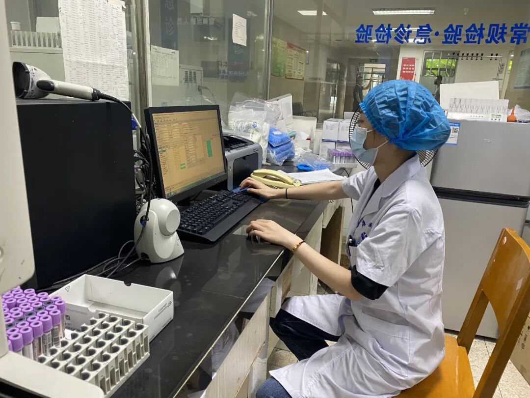 目前,院内的核酸检测任务也非常艰巨,最多的一天,我院检验科采样了1400管核酸标本,工作人员24小时轮流上机,面对比平时工作多出近三倍的任务,依然按时高质地完成。