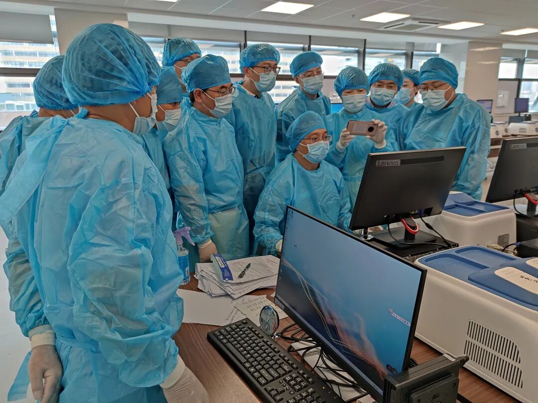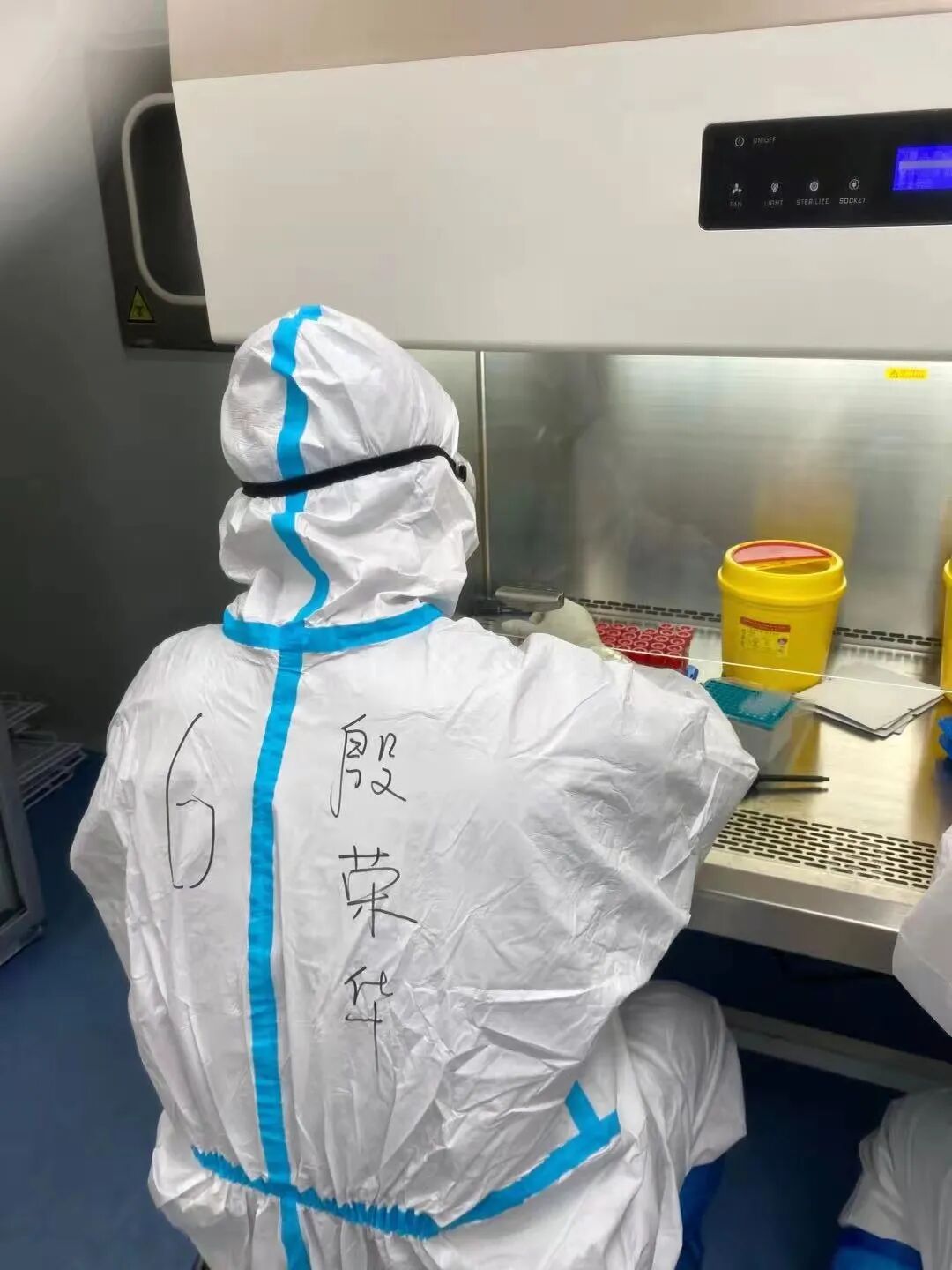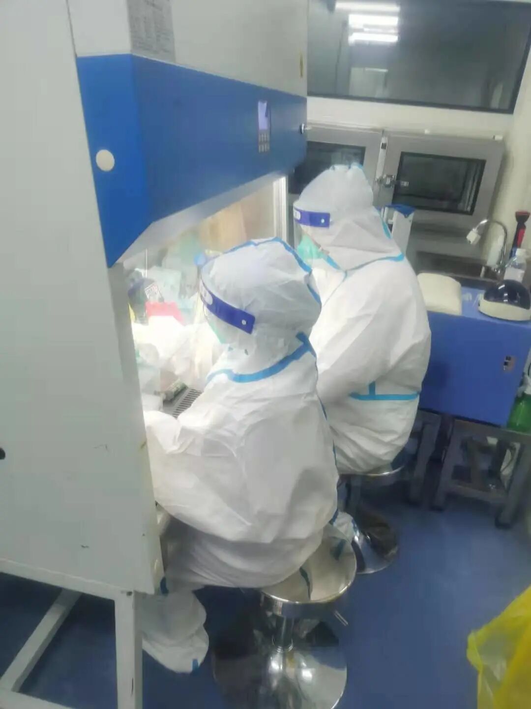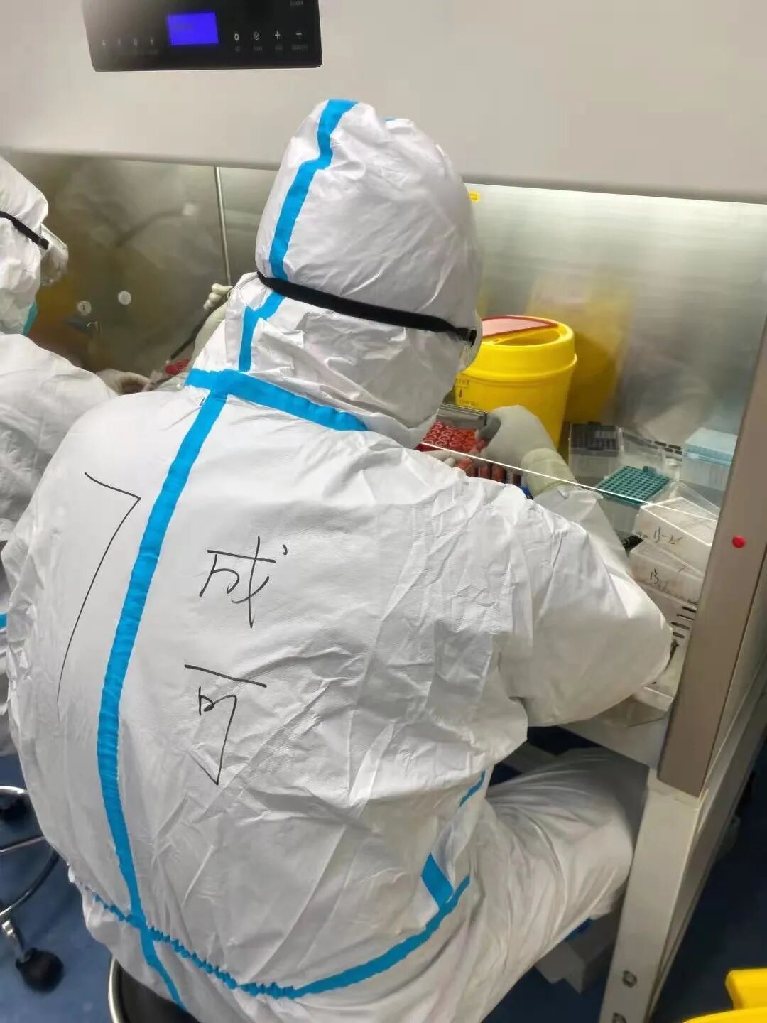 29日夜间11点,接到通知有鼓楼疾控中心的标本送达,陈红兵、刘丹在内的4组的队员们在深夜11点半毫不犹豫从宾馆集合出发,到实验室继续与病毒作战。队员们凝心聚力,高效合作,一夜鏖战。