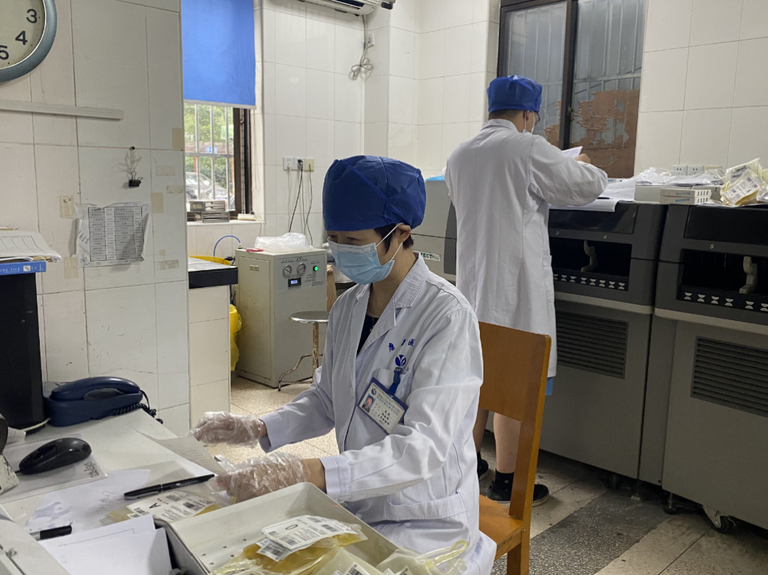 工作量大,工作环境艰苦,10名护士从报名到上阵只用了一天的时间,骄阳似火,她们坚守阵地,完成采集,毫无怨言。