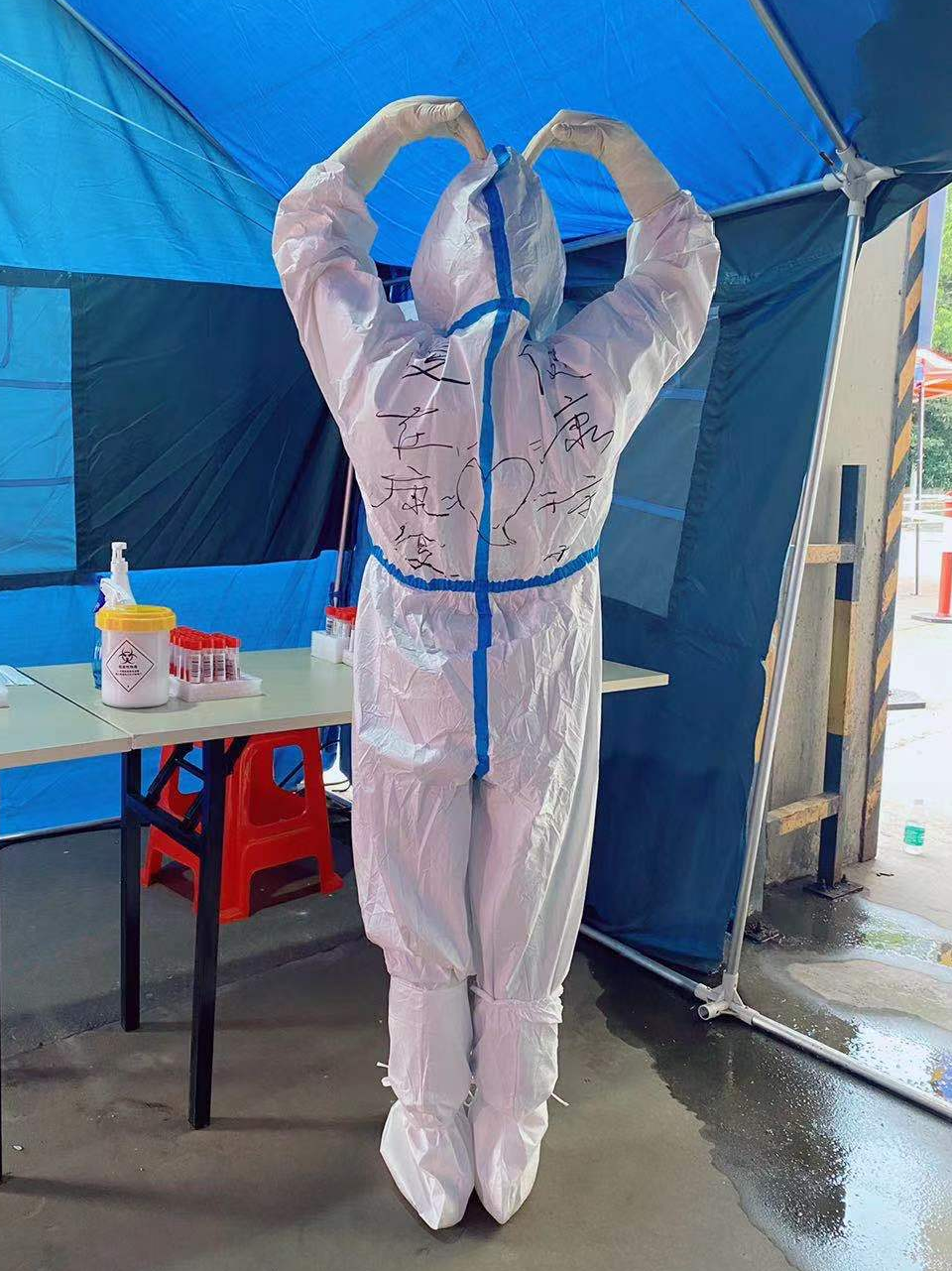 心内科护士王健被分在易初莲花采样点。早上5点半集合,到达现场,规范穿戴上防护装备,就立即投入到紧张的核酸采集中,这一干就是几个小时。30度的高温天气,厚厚的防护服下,贴身的衣服早已湿透,累了就地休息一会儿,继续工作,除中午的短暂休息,一直工作到晚上十点。仅8月9日一天,王健所在的核酸检测点就完成了1600多人次的标本采集。